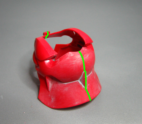1.5mmほど削ってモノアイが若干見えやすくしました。
