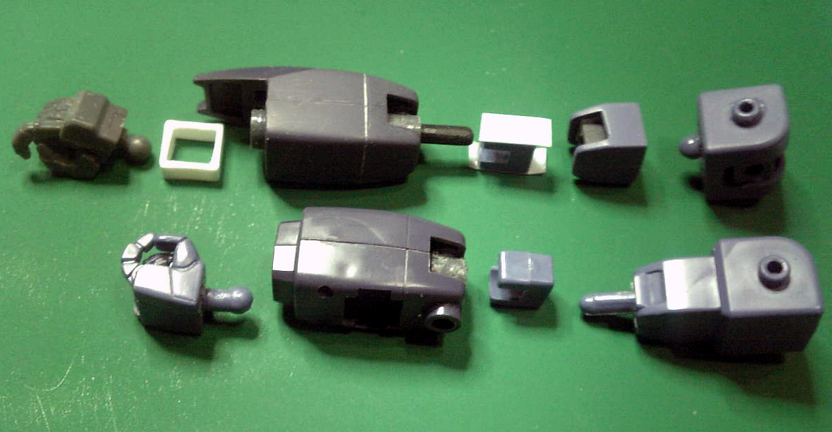 ヒジには元々のパーツにプラパンを貼ってポリキャップを隠します。