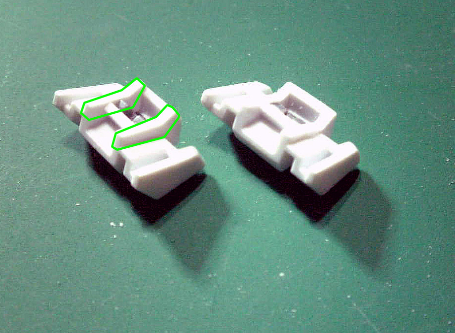 緑の枠の部分をカットし、ヤスリで平面を出します。