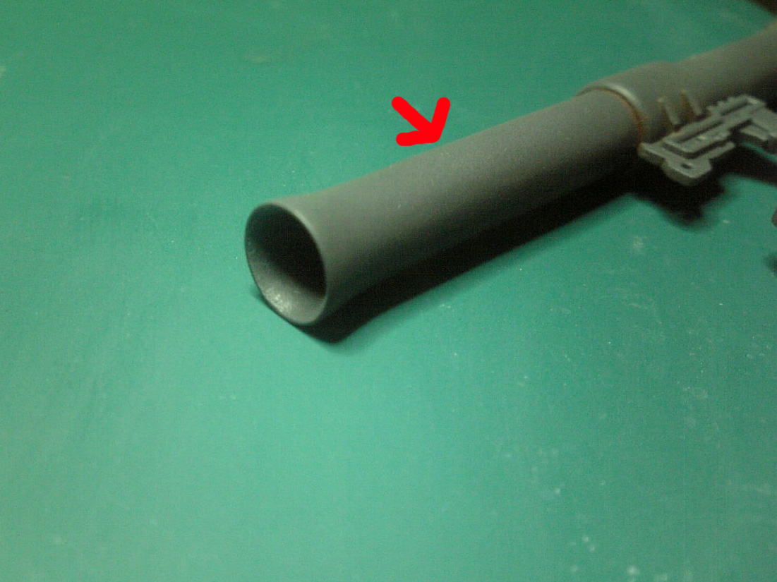 バズーカの合わせ目を消して砲口を少し薄くしました。