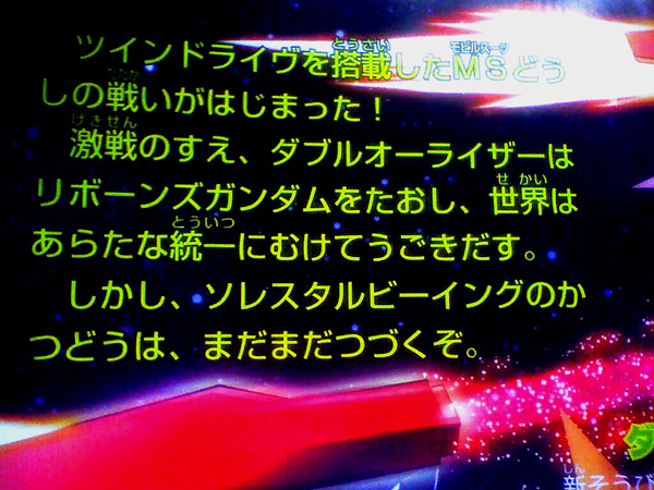 「激戦のすえ、ダブルオーライザーはリボーンズガンダムをたおし…」