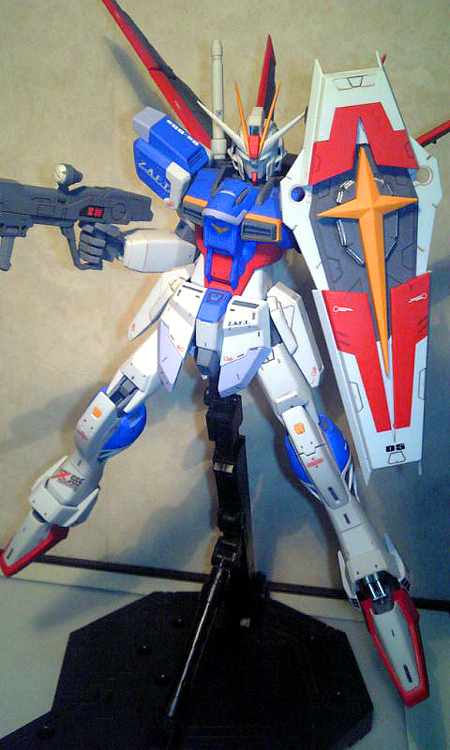 というわけで、またしても長期連載になってしまったMGフォースインパルスガンダムもこれで無事ロールアウト。たいした改修もしてないのに時間かかったあげく出来上がりは「普通」。オリジナリティは発光ギミックのみだし、塗装も手抜き・・・せめてソードインパルスに改修すりゃ良かったか?