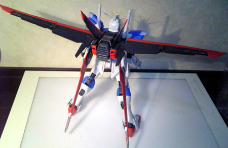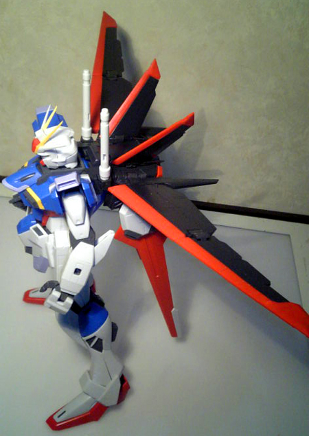 実際MGストライクガンダムのエールストライカーと比べると片側で5mm程度しか変わらないそうです。ただ羽の幅はインパルスの方が大きいですね。