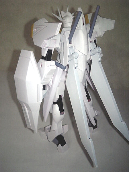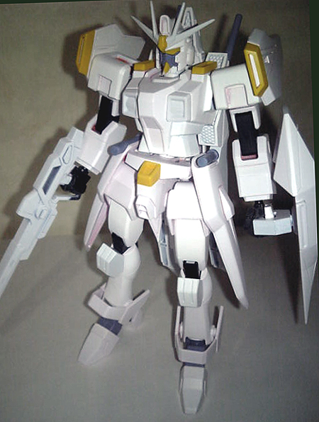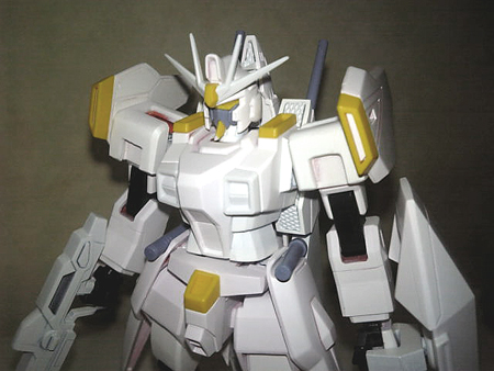 見ておわかりのように、いつものようにサフ兼ねてベースホワイトを噴いてます。ほとんど白1色になったってことは、このガイアのキットがFG並みに塗り分けが必要な塗装上級者向けのキットってことになりますね。マスキングの嵐で塗装が良いんでしょうが塗装面が小さいものは面倒なので筆塗りでいこうと思ってます。