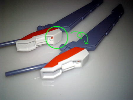 そして羽の先端になんか色がついてるでしょ?上のは赤で下のは白で。ここは肉抜き穴が空いてました。かなり小さいのでパテよりも削りカス詰めて瞬着で固めて削りました。「雑」ですね。色自体は関係ないです。
