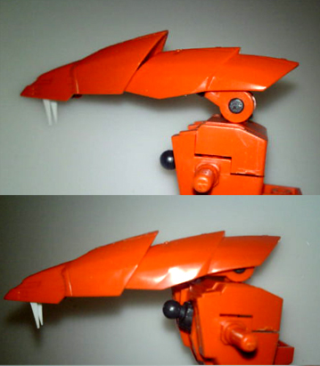 あと、この犬頭は変形用に伸縮ギミックがあるんだけど、その角度が浅い。
