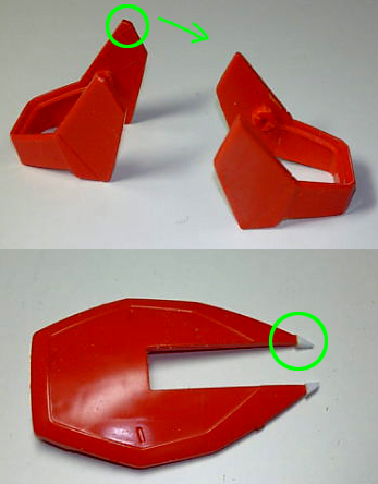 リアアーマーのほうは、プラ材を瞬着でくっつけたあと削って尖らせました。