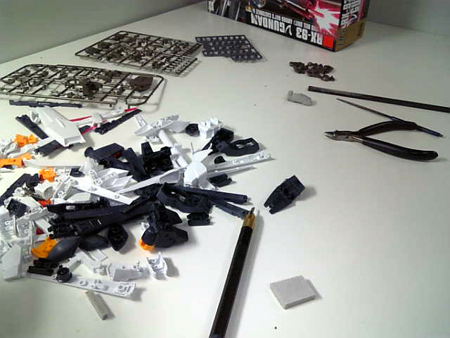 ファンネルパーツだけで朝5時までかかり、組むこともできずです・・・