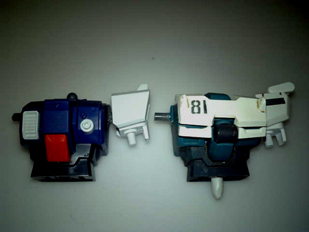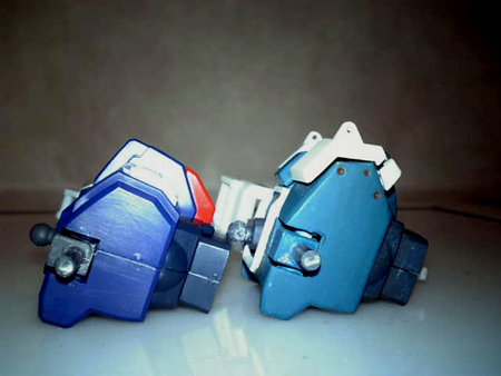 前後左右の幅が陸ガンの幅に合うまでひたすら削り込み瞬間接着剤で無理やり接着。