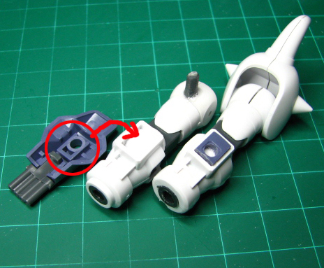 肩パーツにHGUCグフのスパイクアーマーを取り付ける軸を